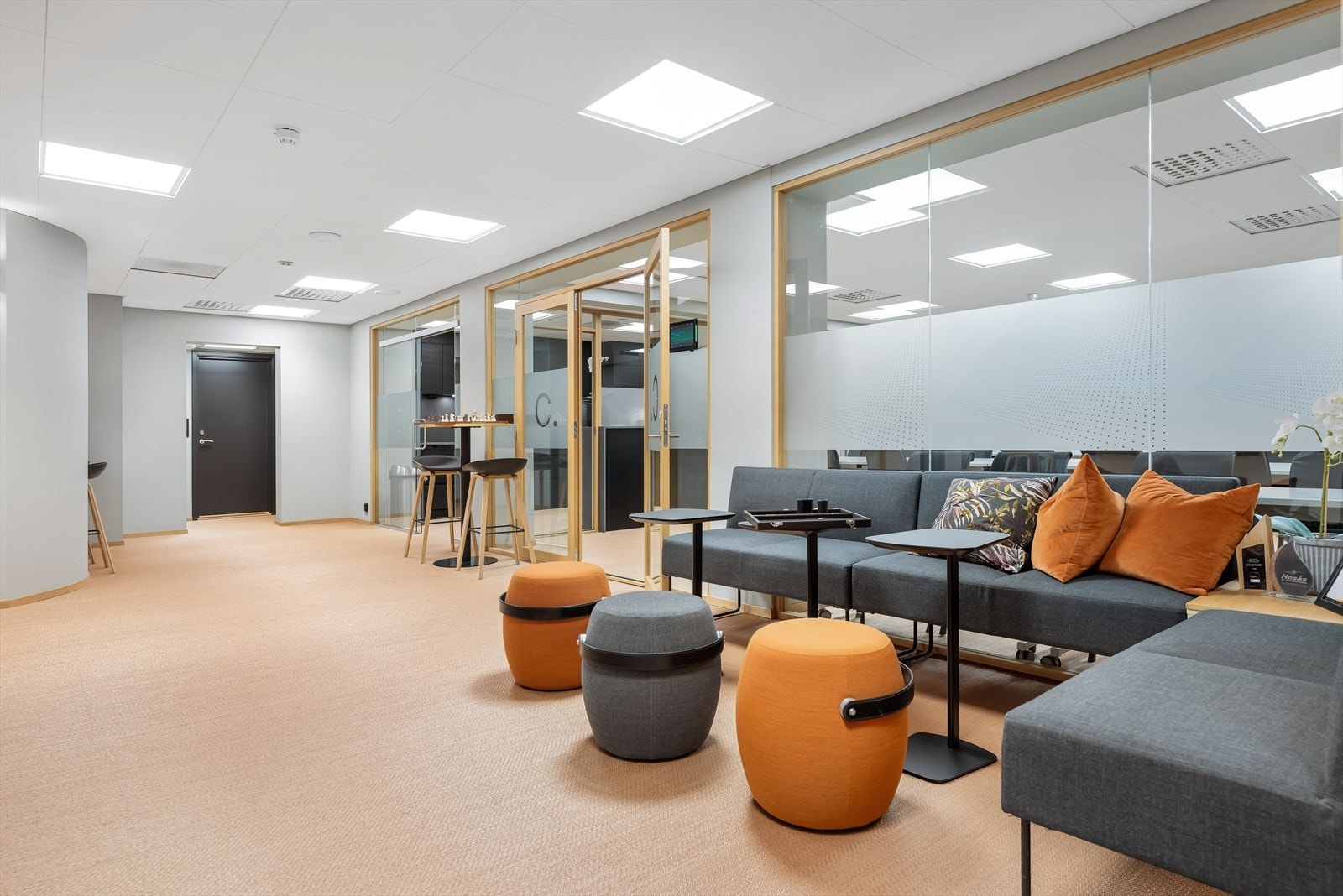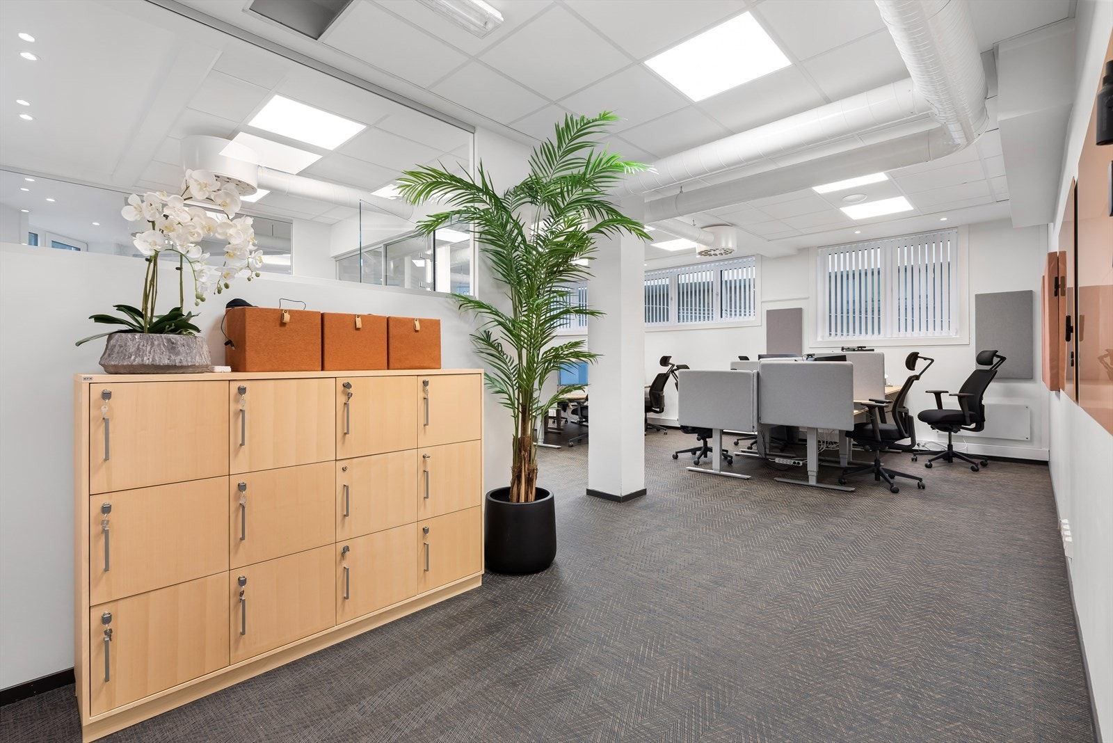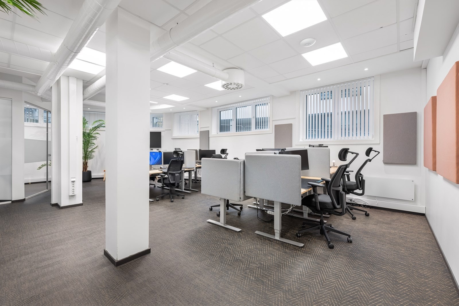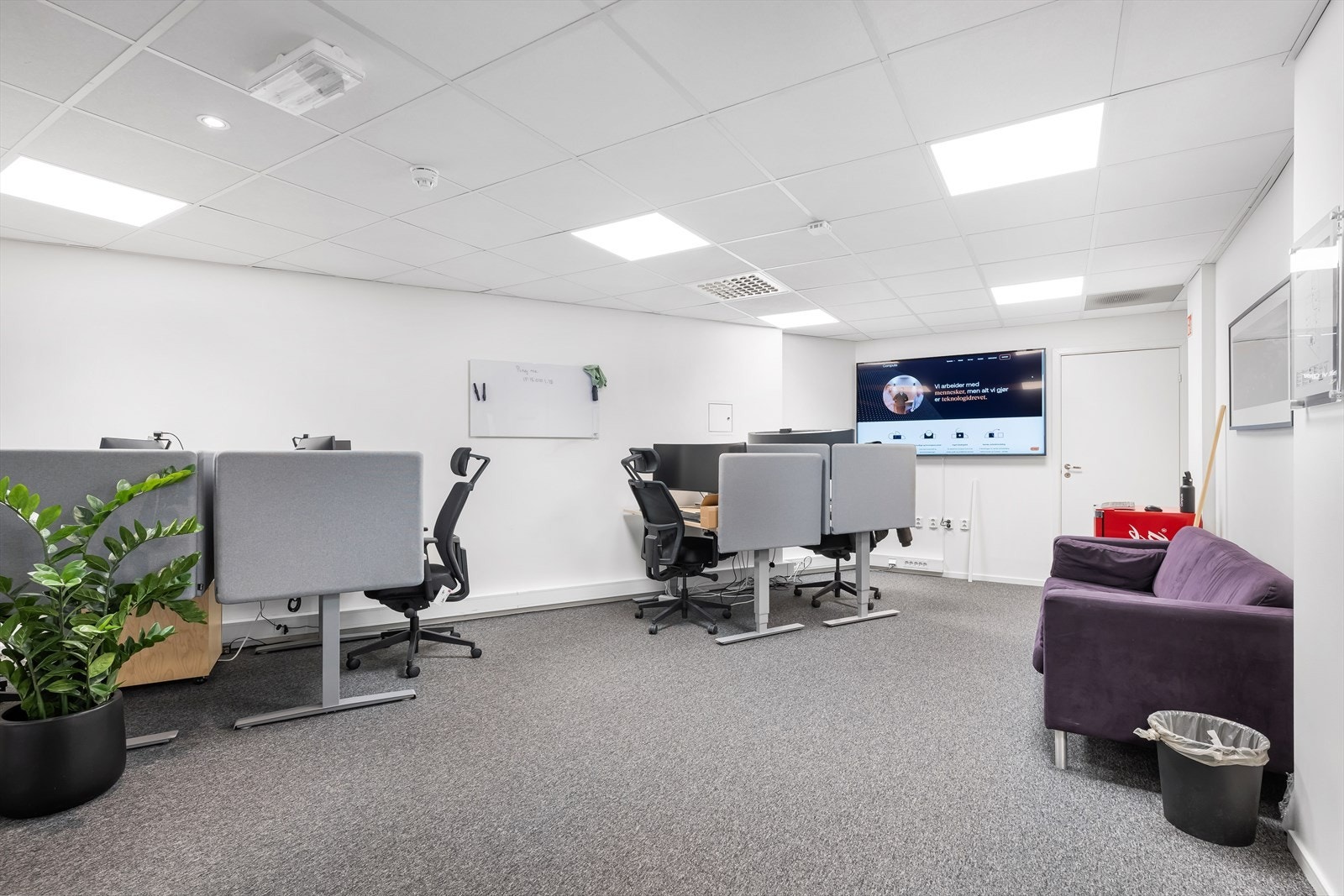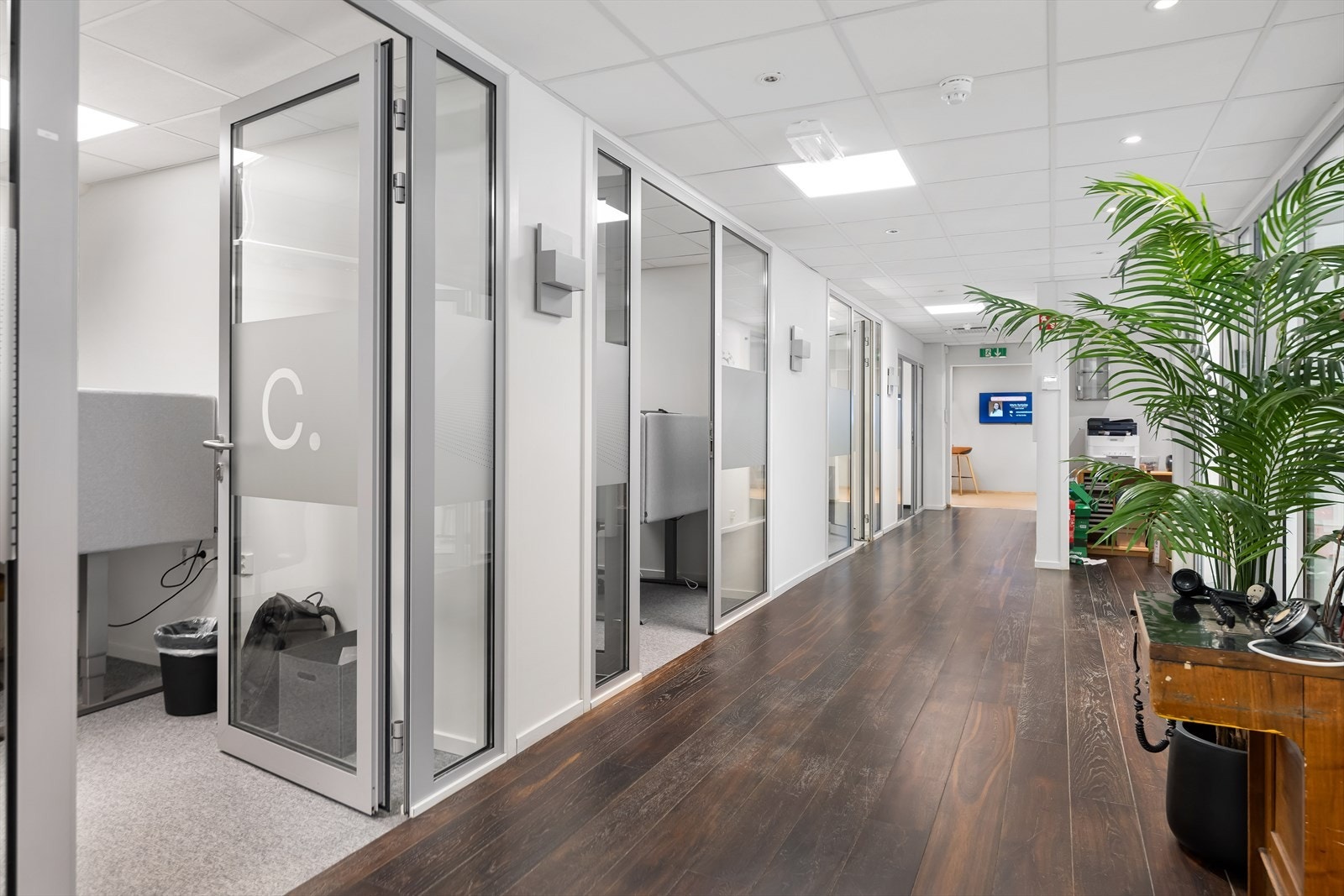 Eiendommen har eget inngangsparti fra gateplan. Fra inngangspartiet kommer en til åpen og lys sosial sone med sitteplasser og kaffe stasjon. Videre er det et tidsriktig og moderne kjøkken, og kombinert møte- og spiserom. I tillegg er det eget møterom og stillesoner. Flere avdelinger med wc og dusj for herre og damer. Fra sosial sone, er arealene delt i to avdelinger, slik at det er mulig for flere virksomheter å benytte kontorene adskilt. Kontorarealene består av egne cellekontorer med glassfronter/dører, samt åpne kontorlandskap. Det er benyttet glassfronter for godt gjennomlys til alle arealer. I tillegg er det tekniske rom med ventilasjon samt noe lagerplass.