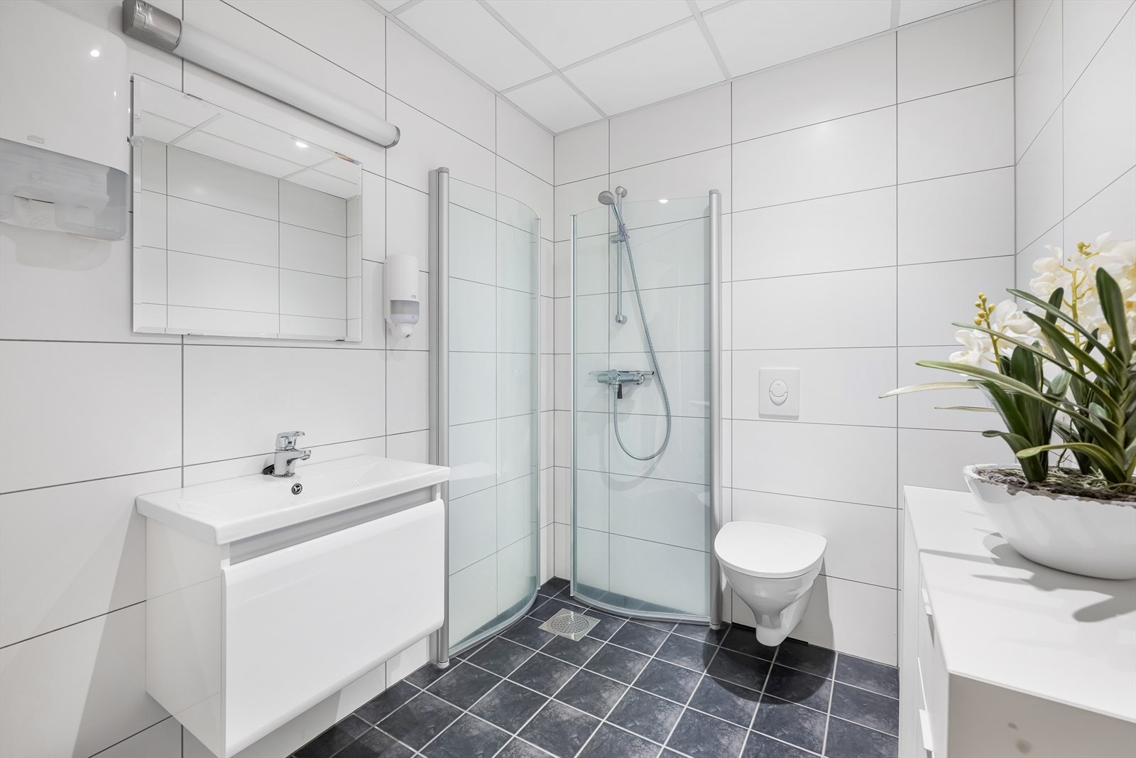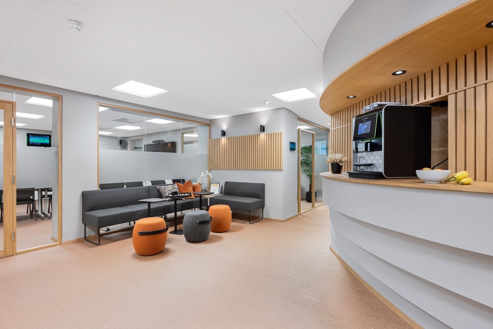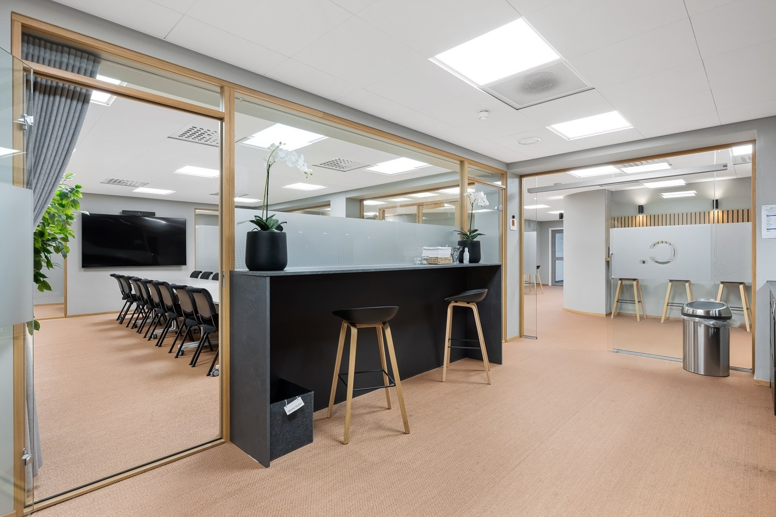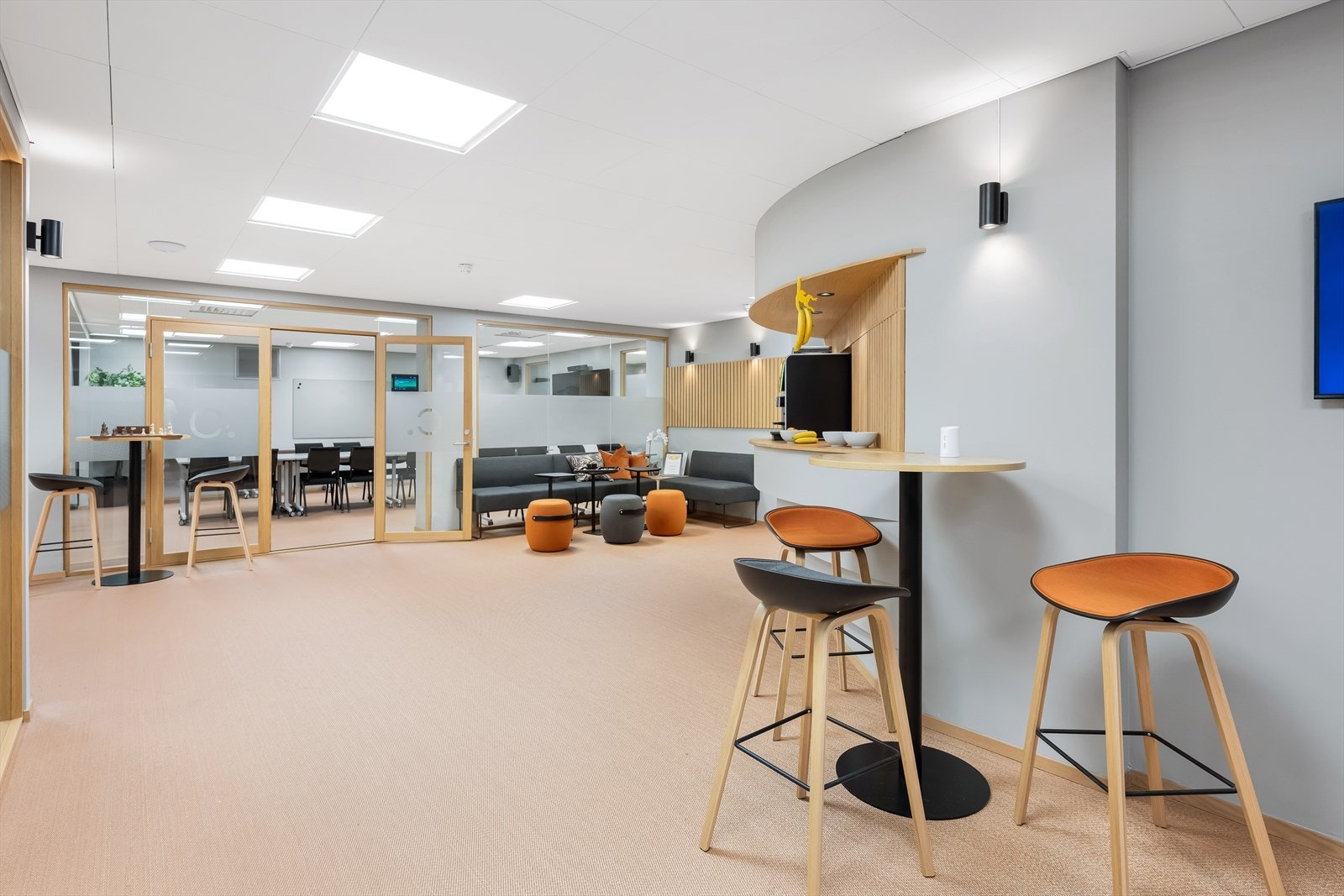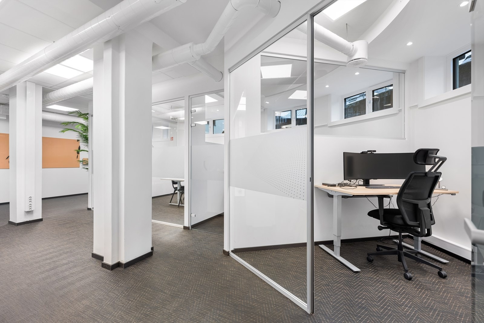 Eiendommen har eget inngangsparti fra gateplan. Fra inngangspartiet kommer en til åpen og lys sosial sone med sitteplasser og kaffe stasjon. Videre er det et tidsriktig og moderne kjøkken, og kombinert møte- og spiserom. I tillegg er det eget møterom og stillesoner. Flere avdelinger med wc og dusj for herre og damer. Fra sosial sone, er arealene delt i to avdelinger, slik at det er mulig for flere virksomheter å benytte kontorene adskilt. Kontorarealene består av egne cellekontorer med glassfronter/dører, samt åpne kontorlandskap. Det er benyttet glassfronter for godt gjennomlys til alle arealer. I tillegg er det tekniske rom med ventilasjon samt noe lagerplass.