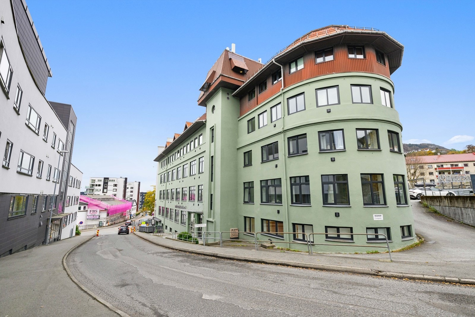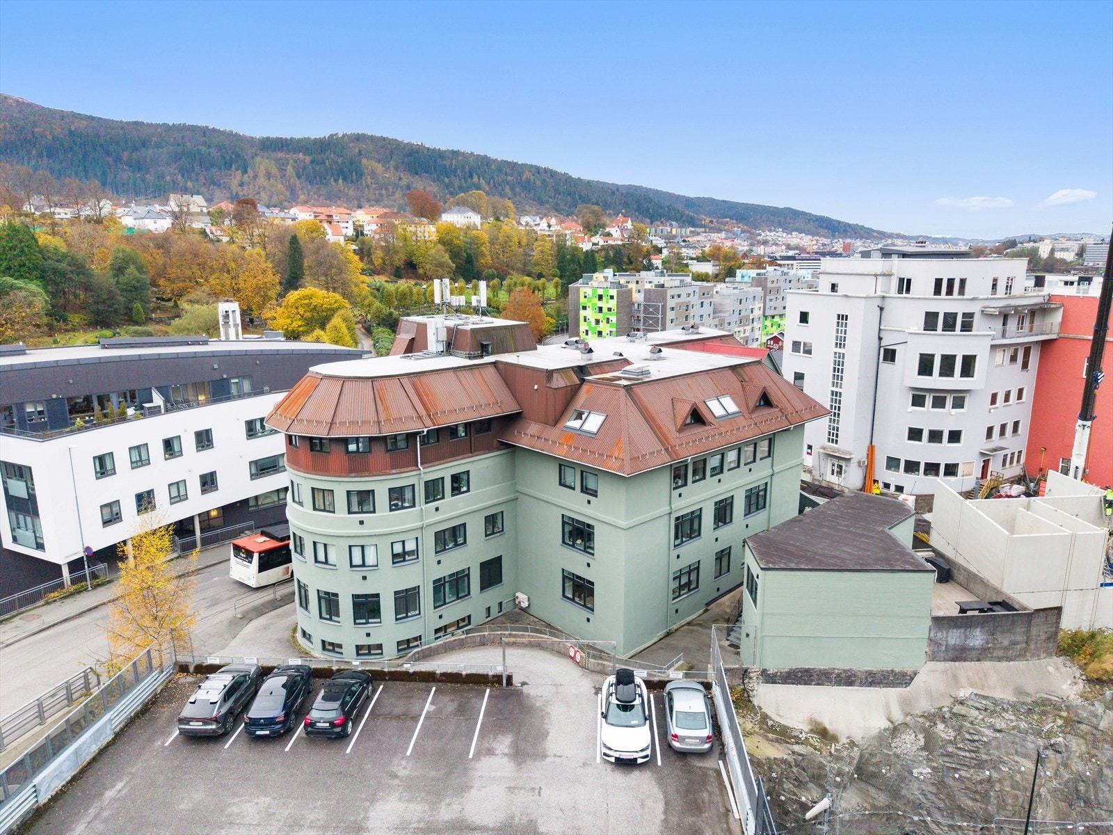 Området har gjennomgått en større transformasjon de siste tiårene, og fremstår i dag som et attraktivt og urbant område. Det området omfatter blant annet bybanestopp, ny bystrand og en grønn park som tilknytter de nye byggene i sjøfronten. I kort avstand fra kontorene/eiendommen er det flott gangvei langs den kommende Bystranden inn til sentrum. Området består av en kombinasjon av kontorer, utdanningsinstitusjoner (Kunsthøyskolen), nærbutikk samt leiligheter. Området er blitt et attraktivt område for brukere og beboere, og ikke minst for publikum som benytter gang-, sykkel- og treningsområdene langs Store Lungegårdsvann. Det er alltid liv og mye mennesker som benytter de flotte opparbeidede fellesområdene.