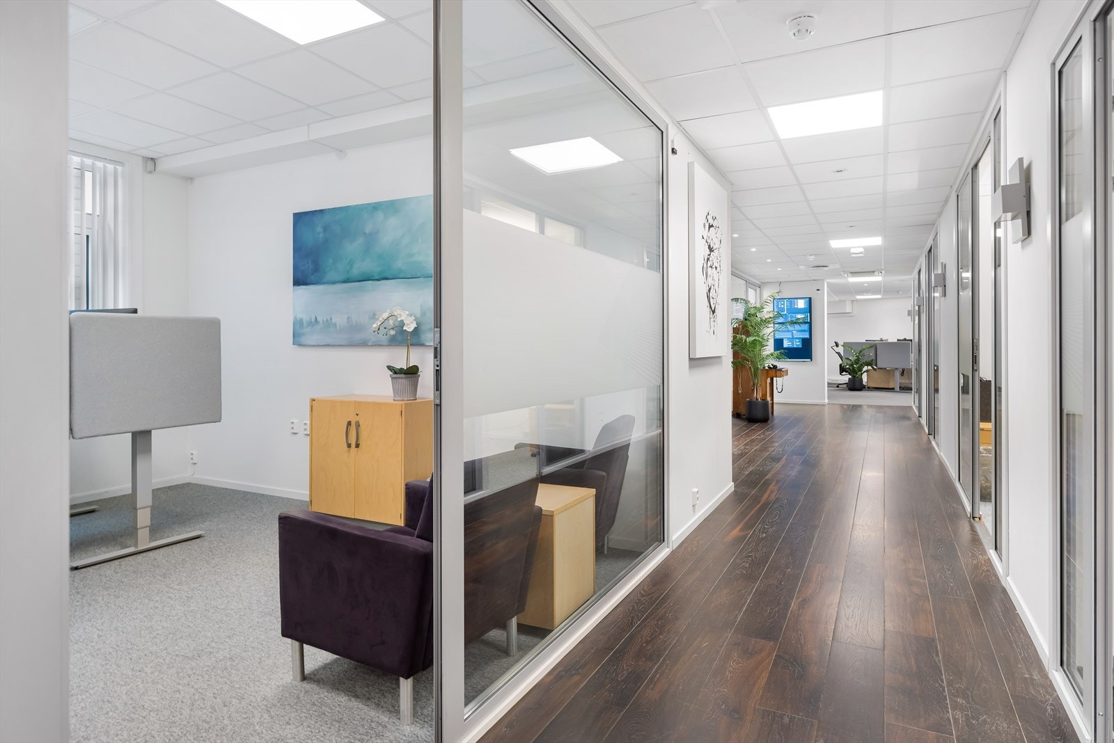 Seksjonen holder meget god kontorstandard og det er benyttet gjennomgående gode kvaliteter på tekniske installasjoner samt materialvalg for overflater som gulv, vegger og tak. Moderne og stort kjøkken, samt høy kvalitet på kommunikasjonsutstyr og i møterom. Kontorene er lyse og av god størrelse. Glassdører og fronter mellom gang og kontorer. Møllendalsbakken 2A er en innbydende og attraktiv kontorseksjon hvor de fleste virksomheter vil trives. Samlet vil seksjonen passe godt til virksomheter mellom 25 og 30 personer. Seksjonen kan også fint benyttes av to virksomheter.