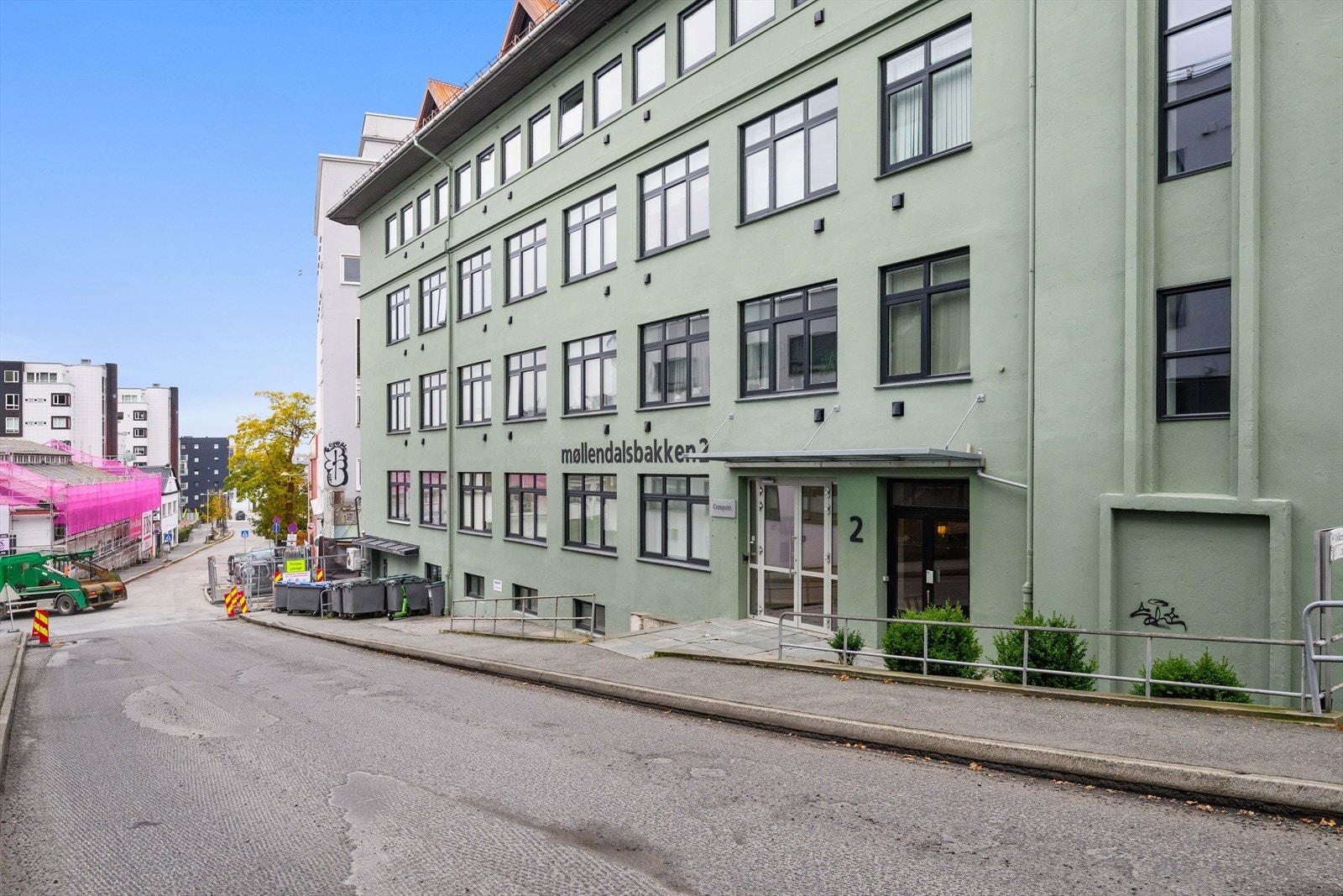 Eiendommen ligger sentralt og med god synlighet og tilkomst i Møllendalsbakken.