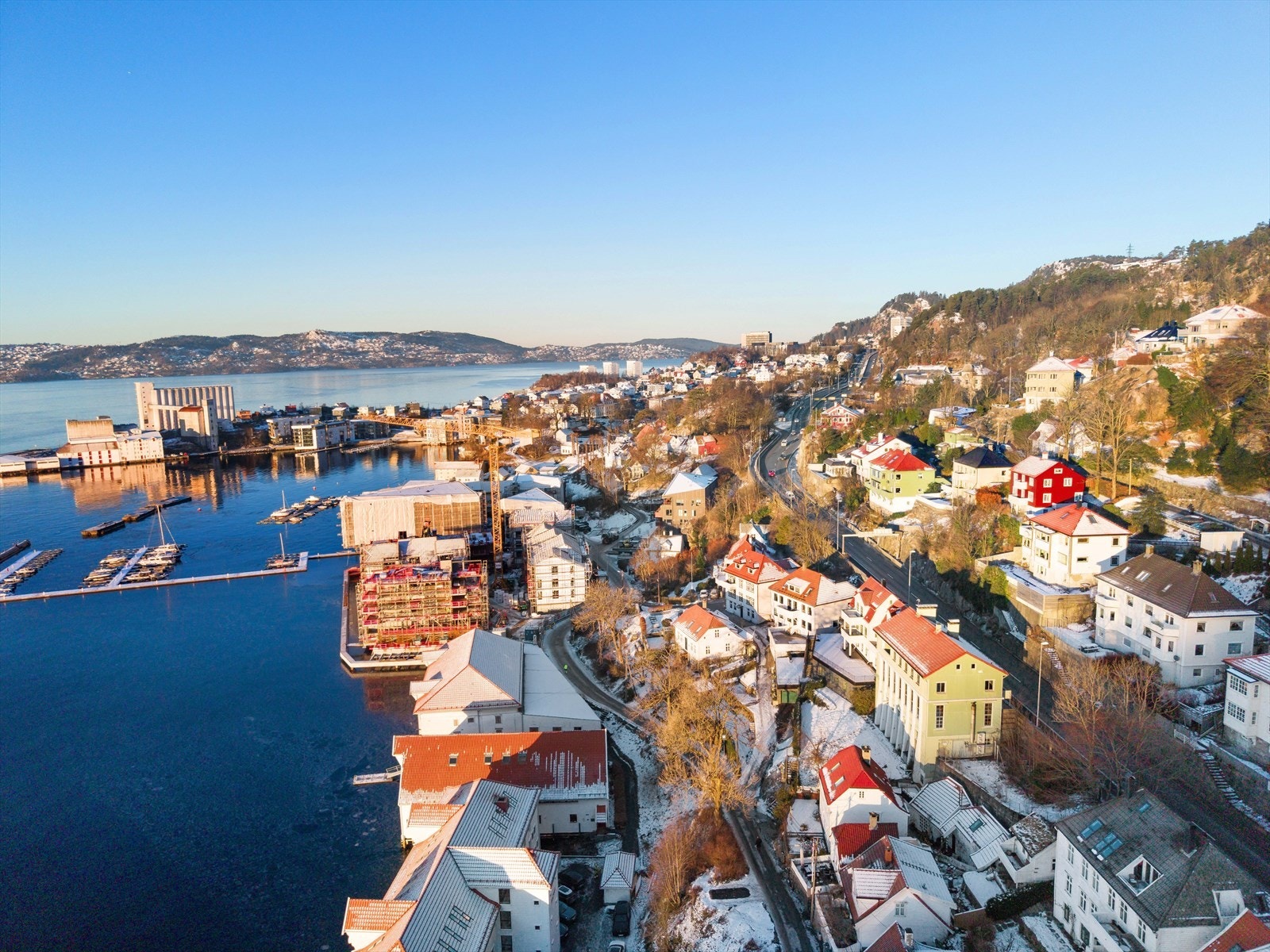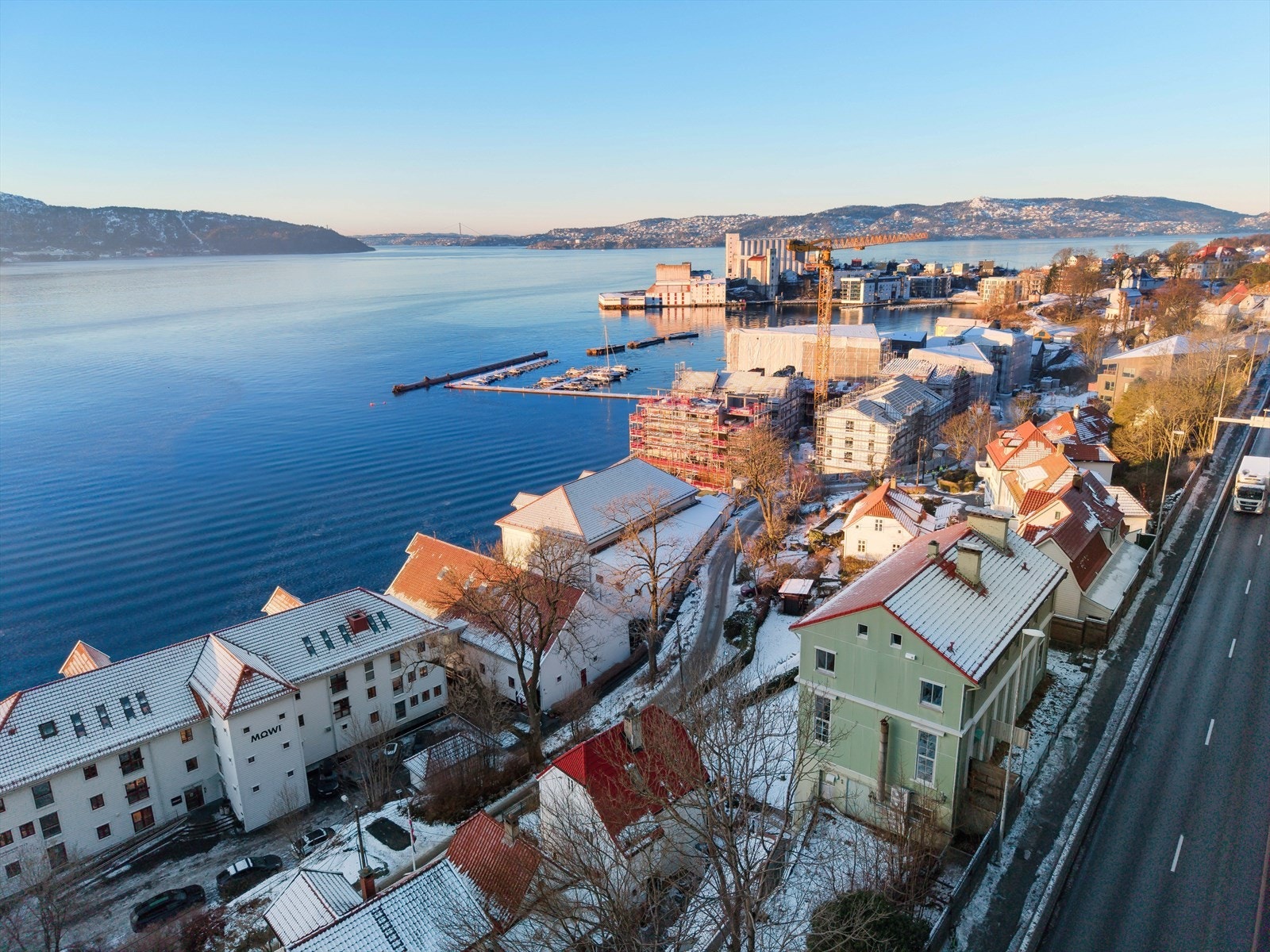 Bergen sentrum ligger kun få minutter unna, enten til fots, med sykkel eller via gode kollektivforbindelser. Dette gjør området attraktivt både for beboere, virksomheter og besøkende som ønsker nærhet til bykjernen, samtidig som man beholder en mer rolig og maritim ramme.