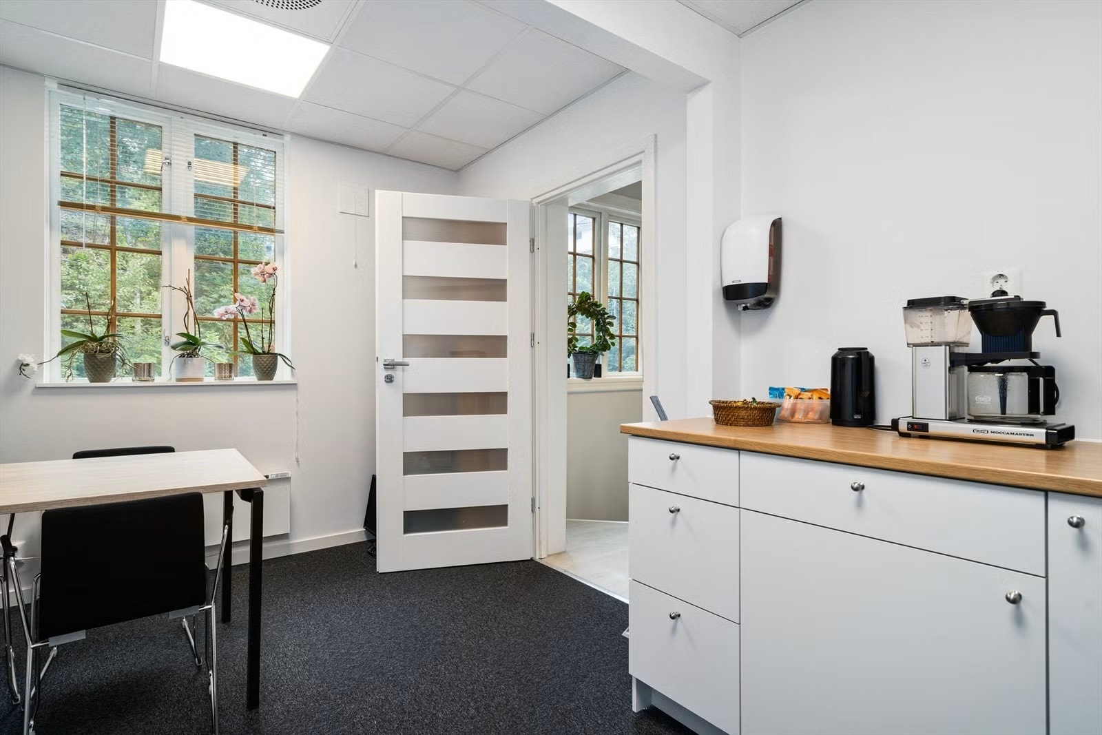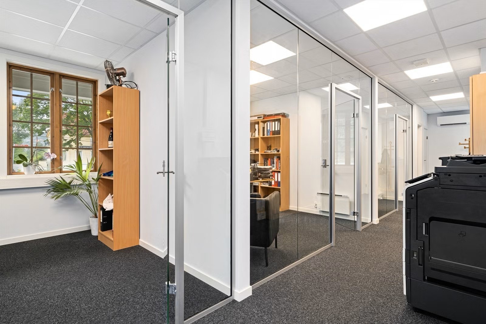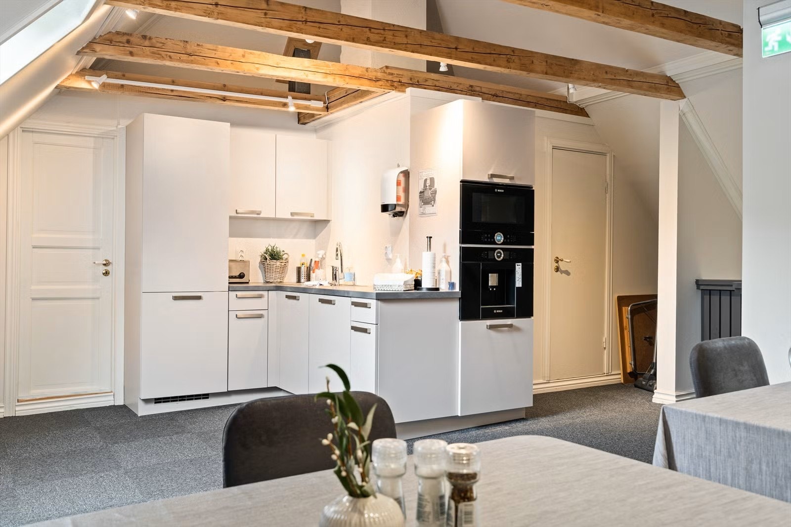 1.etasje: Entré og trappeareal, Gang- og fellesarealer, Kontorer, Spiserom, 2 stk. WC-rom.